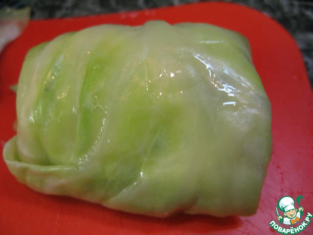 Кочан капусты бланшировать в кипящей воде 5-7 минут.