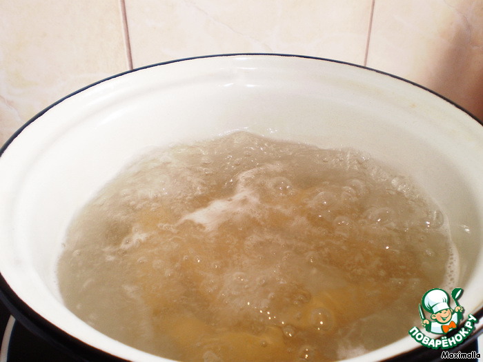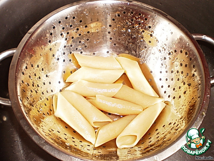 По окончании варки половину воды с макарон сливаем в другую кастрюлю и варим в ней тыкву в течение 2 минут.