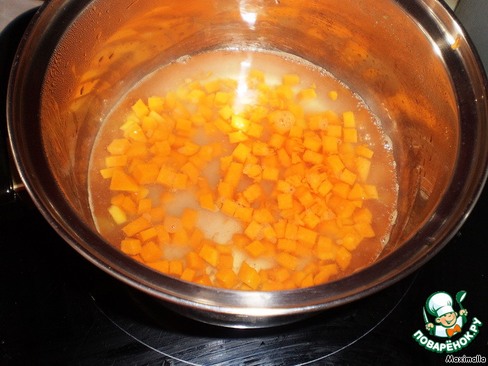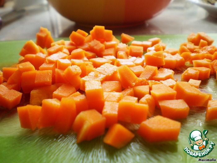 Тыкву нарежем мелкими кубиками (0,5 – 0,7см).