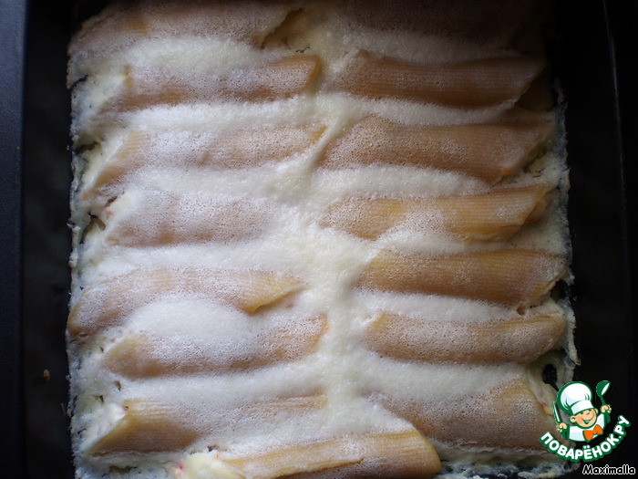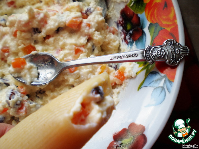 | Этап конкурса: "Питательный обед". Нежнейшие макароны под сметанным соусом с начинкой из творога, изюма и тыквы. Полезно, красиво и очень вкусно! |
