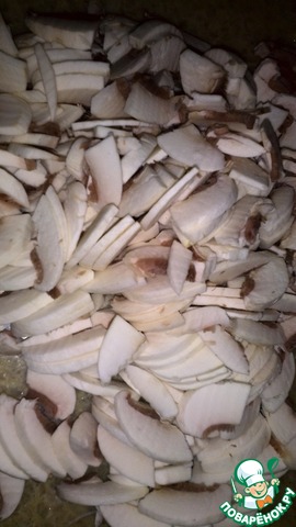 Грибы режем мелко-средне. Грибочки можно и не класть в запеканку!