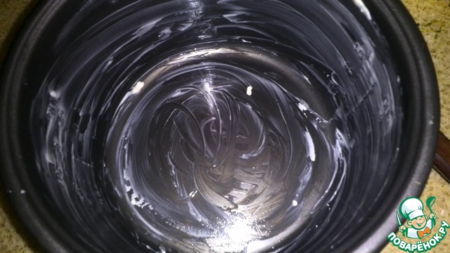 Смазываем кастрюлю мультиварки сливочным маслом.