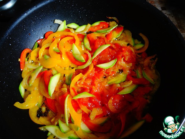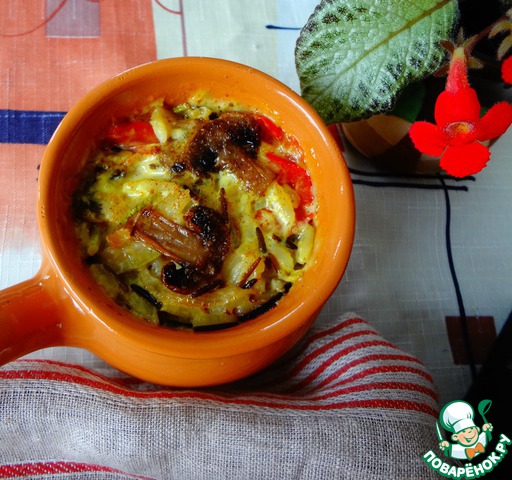 Постный жюльен из овощей с рисом