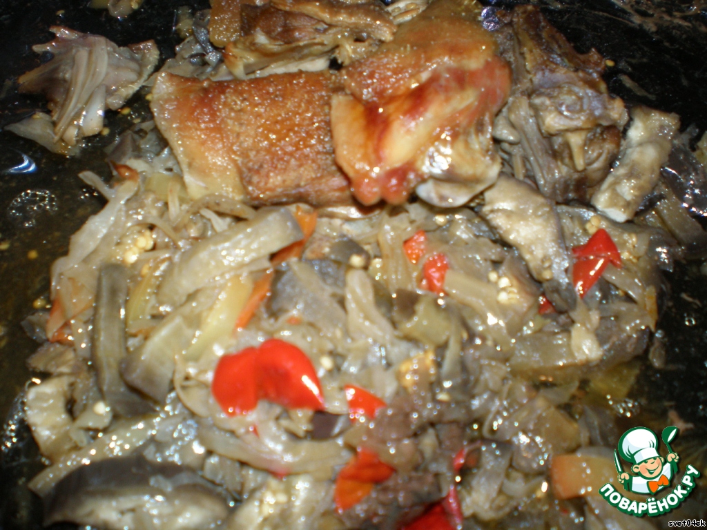 | Я очень люблю уточку и думаю, что я не одинока! Но я предпочитаю уточку не целую, и не фаршированную, а кусочками, каждый из которых такой румяный, поджаристый и сочный! Блюдо по мотивам утки с капустой, слегка обогащенное сезонными овощами, которые уже совсем было собрались завянуть в холодильнике, но у них ничего из этого не вышло! Результат - прекрасный, сочный, ароматный, легкий! |