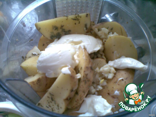 в маринатор: картошку, и все ингредиенты. Если нет маринатора, можно в целлофановый пакет все сложить и потрясти. Промариновать