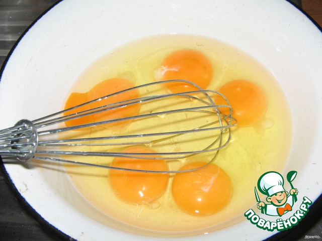 5. Вылить яйца поверх овощей – перемешивать не надо.