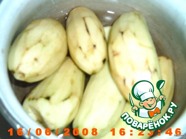 Очистить баклажаны, налить воды и варить до готовности (мягкости)