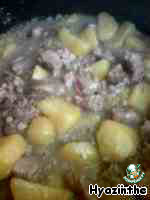 Каша из картофеля с перловой крупой и мясом