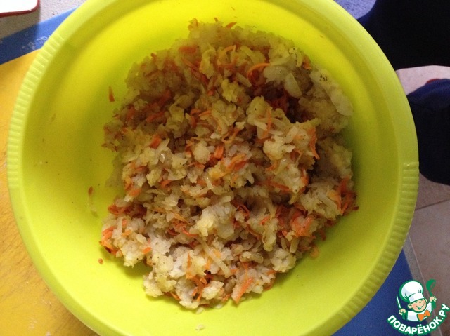 Картофель натереть на терке. Смешать с луково-морковной зажаркой. Посолить, поперчить. При желании добавить любимую приправу либо мелко рубленную зелень