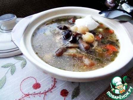 Куриный грибной суп с фасолью и нутом
