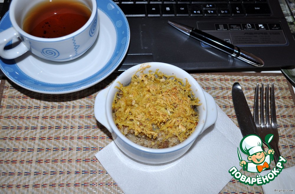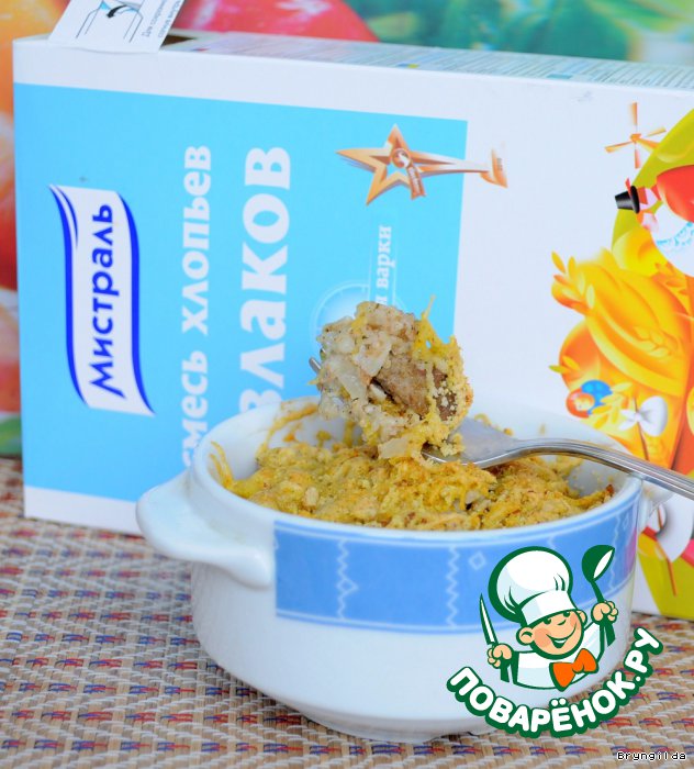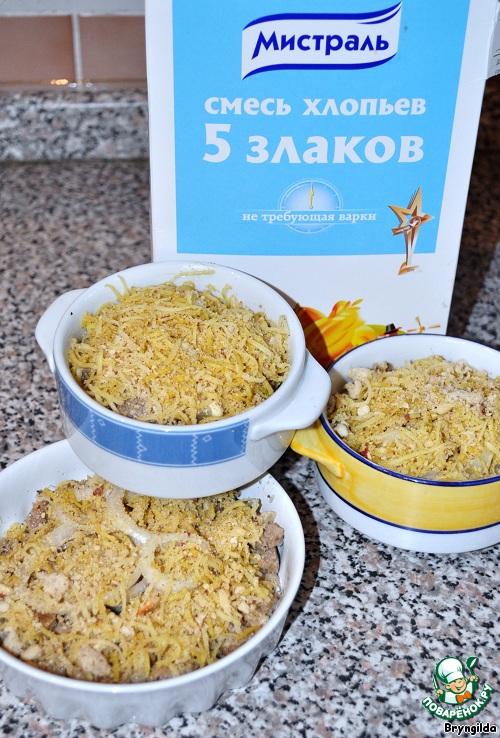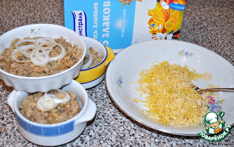 Перемешать, а формочки заполнить смесью из фарша и хлопьев