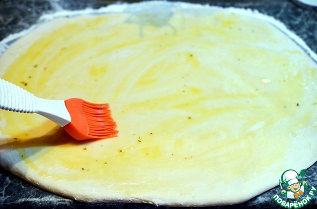 Сворачиваем хлеб в виде улитки. Включаем в мультиварке на 10 минут режим подогрев, затем выключаем и оставляем закрытой, чтобы хлеб подошел.