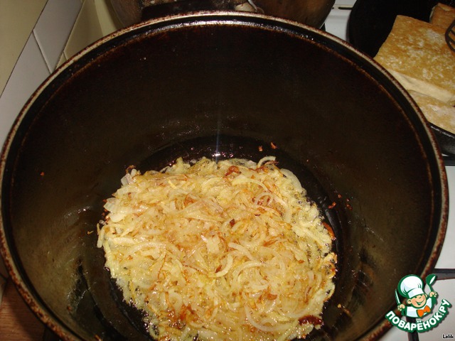 Обжариваем лук в казане