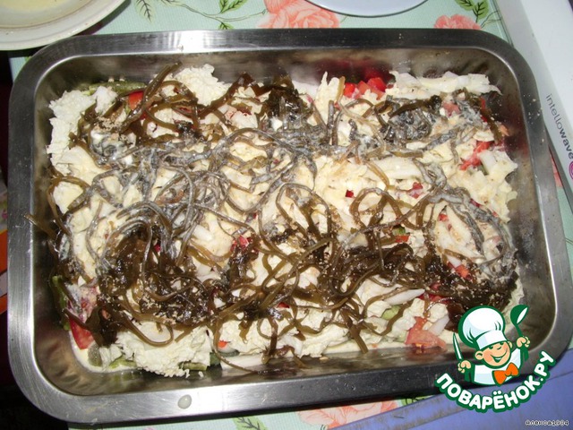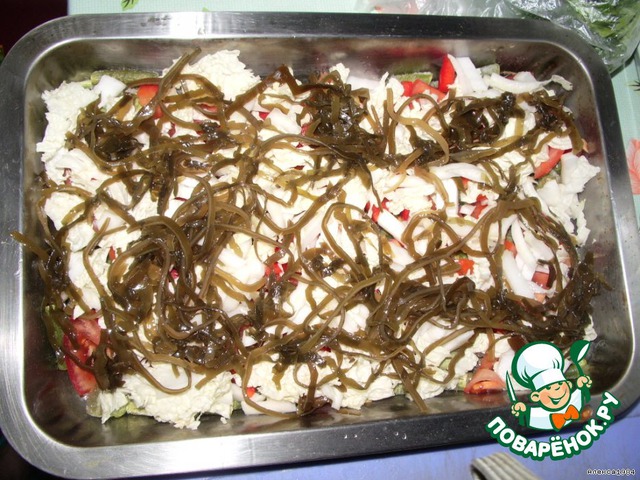 Выкладываем морскую капусту.