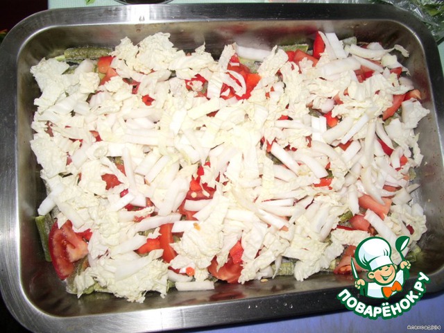 Выкладываем листья поверх перца.