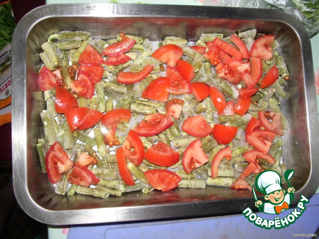 Помидоры выкладываем поверх фасоли.