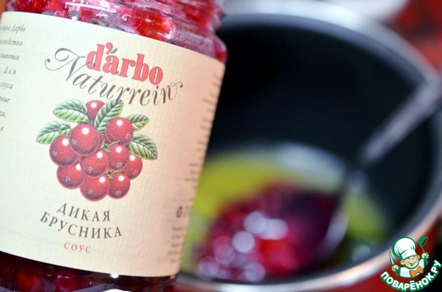 Добавьте ягодный соус. Я взяла соус Дикая брусника D`arbo.