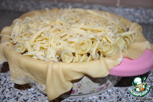 Теперь удалим лишнее тесто, и аккуратно загнем край и ставим в духовку на 15 минут.