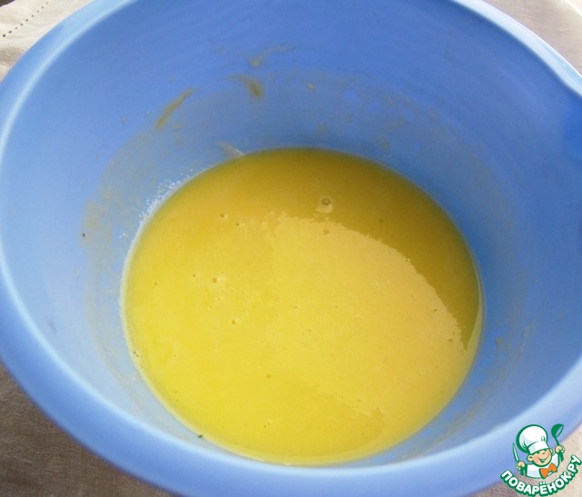 Слегка взбиваем венчиком яйцо и смешиваем с растопленным маслом.