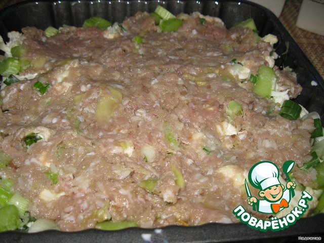 Теперь фарш. Он у меня остался от приготовления фаршированных кабачков - уже с солью, специями.