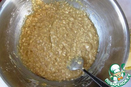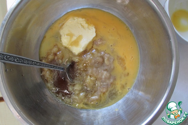 Бананово-медовую смесь вылить в мучную, перемешать.
