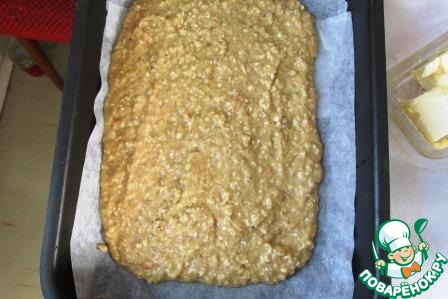 Прямоугольную форму застелить пекарской бумагой, смазать маслом и выложить тесто.