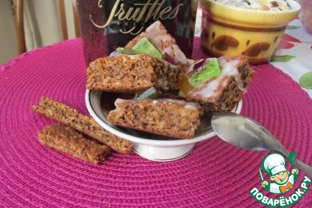 Выпекать при температуре 170 градусов от 45 до 60 минут в зависимости от размера формы. Остудить в форме. Выложить на доску и разрезать на 15 квадратиков.