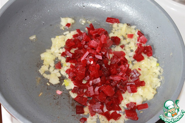 Для свекольного рагу на сливочном масле обжарила до прозрачности мелко нарезанный репчатый лук