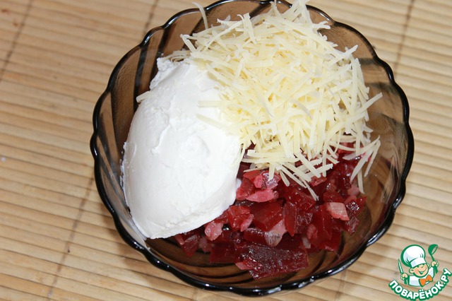 Добавила нарезанную мелким кубиком отварную свеклу.