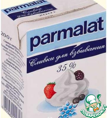 Для соуса я взяла сливки Пармалат. Они хорошо взбились в нежный густой крем
