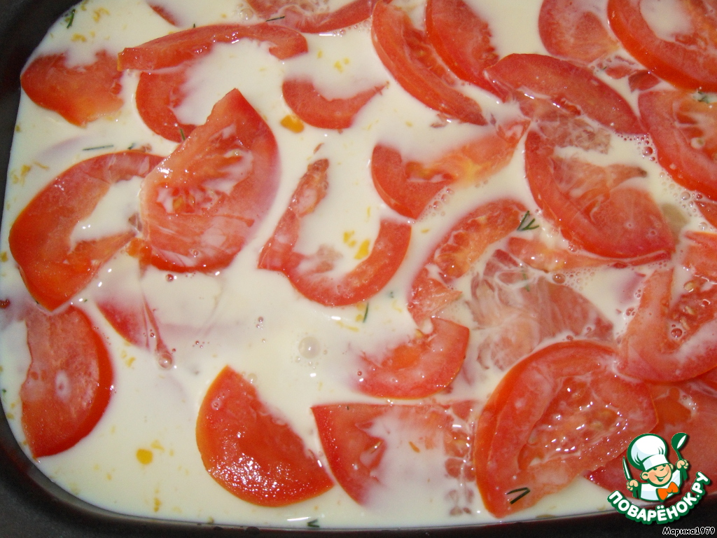 Молоко смешиваем с яйцами, солим по вкусу и заливаем этой смесью нашу запеканку