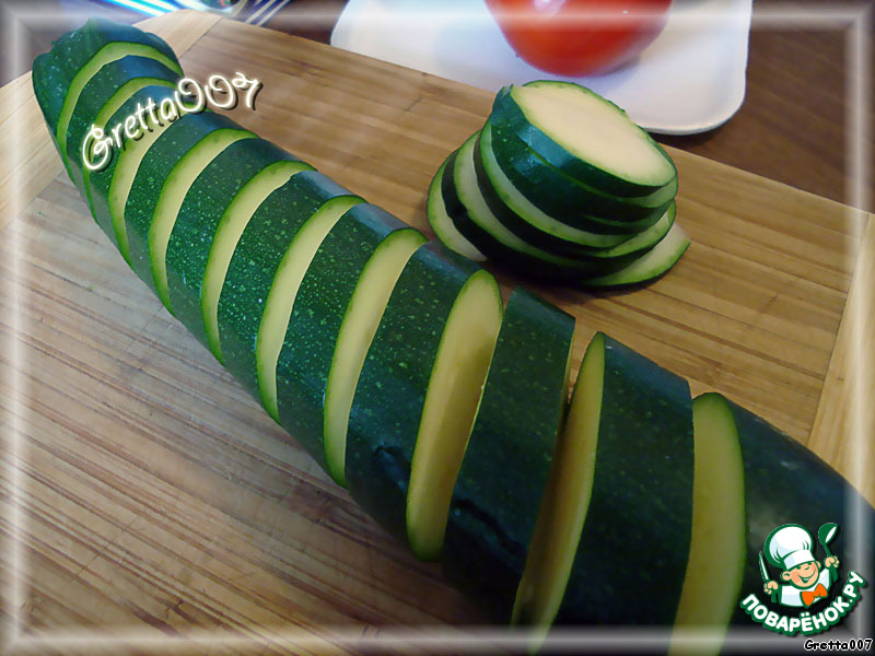 Через каждые 1,5 см поперек цуккини сделать глубокие надрезы, вынимая кусочки мякоти толщиной около 0,5 см.