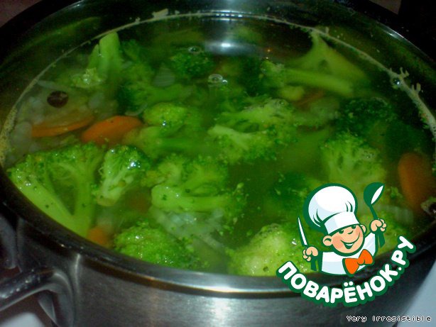 | Вкусный душистый супчик с брокколи, малокалорийный, но достаточно сытный за счет сыра и яиц. |