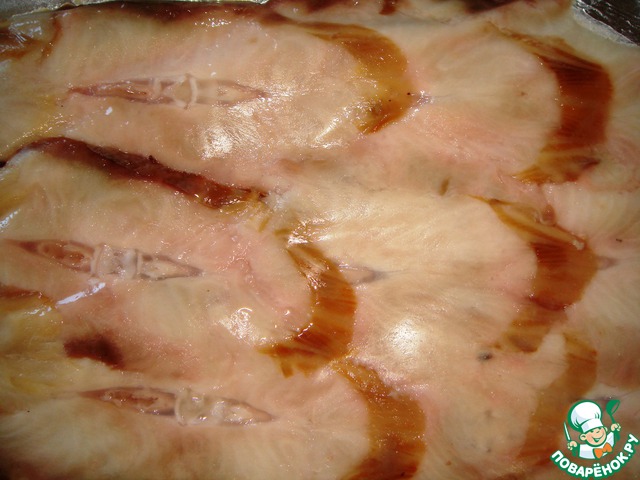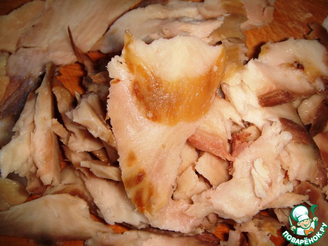 - я удалила кость и разобрала на крупные ломтики (несколько ломтиков отложила для украшения)