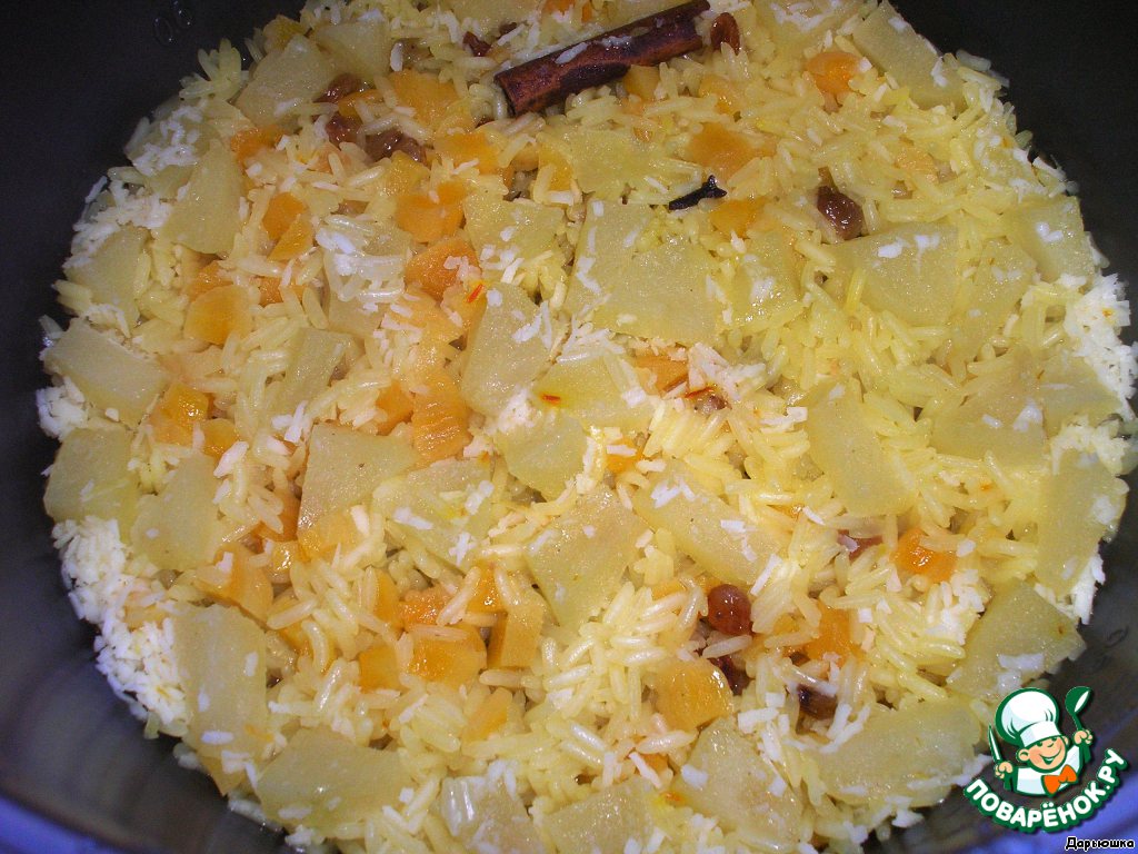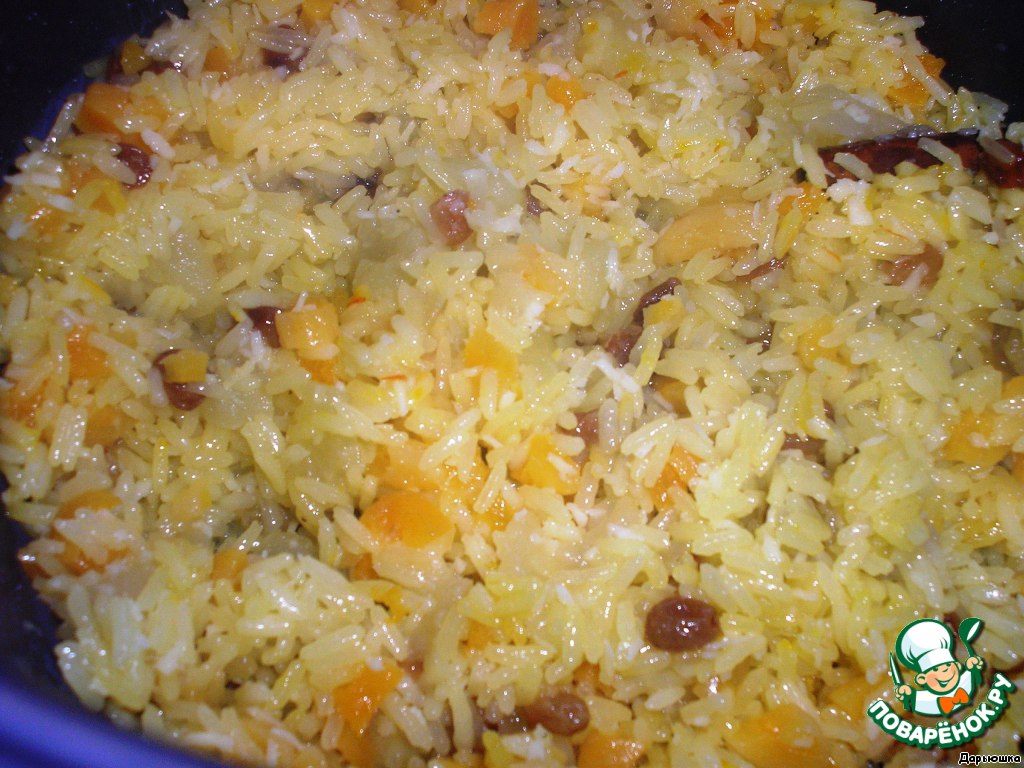 Заливаем водой. Закрываем крышку. Устанавливаем режим "Плов".