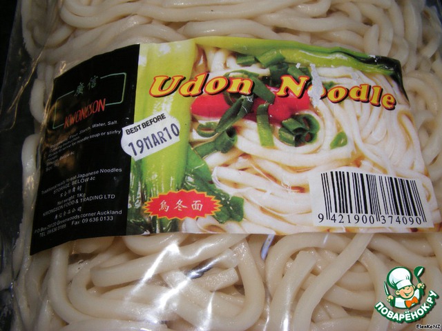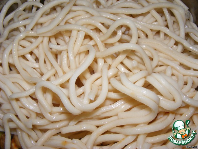 Лапша удон, готовая в употреблению.