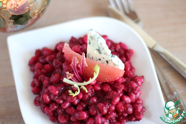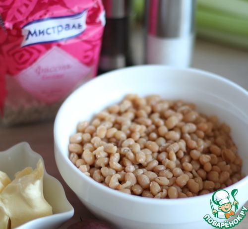 Здравствуйте дорогие девочки!!! Эх, давно я не была в вашей теплой хлебо-сольной компании…. Всех с наступающими! Но от слов к делу – будем украшать стол очень красивой фасолью. Я люблю этот рецепт за простоту приготовления, изысканный вкус и праздничность. Самое долгое в рецепте это варка основных ингредиентов. Поэтому, ставим варить фасоль, как указано в инструкции, с добавлением соли и щепотки соды. Соль не вредит бобовым и не делает их твёрже, как полагают многие, это уже научно доказано. А сода поможет сделать бобики мягче. Вместо соды можно положить имбирь или кусочек ананаса – эффект тот же. Параллельно варим свёклу. Не забудьте достать из холодильника сливочное масло, оно должно согреться до комнатной температуры.