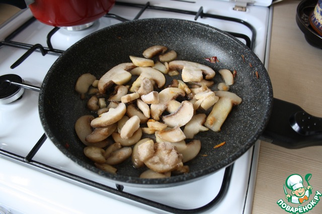 Теперь самая нефотогеничная часть рецепта. Свежих шампиньонов в окрестностях не оказалось - пришлось взять замороженные...