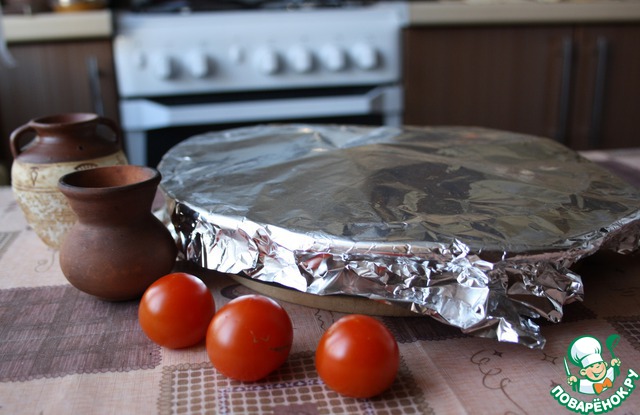 Булгур в кастрюльке уже сварился, а вот в овощах остался жестковатым. Поэтому я накрыла блюдо с баклажанами и перцем фольгой и отправила еще немного потомиться в духовке