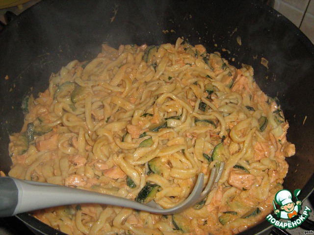 | Эта паста(у меня домашняя лапша... смотрите предыдущий рецепт) просто объедение!проста в приготовлении но уверяю любители рыбы будут в восторге! |