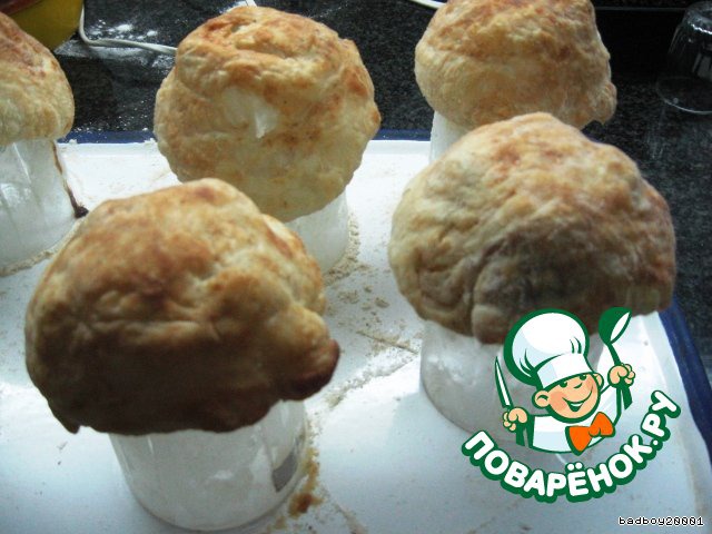 | Корзинки с слоеного теста с очень простым кремом и с фруктовой добавкой. Наш девиз: Тяжело на кухне, вкусно за столом. badboy |