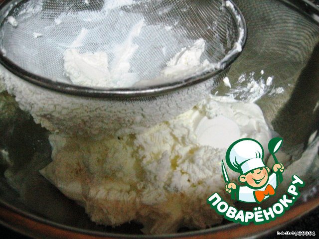 и в это время готовим наполнитель. Смешать творожную массу, сметану, творог рекомендую протереть через сито, пудинг, сахар.