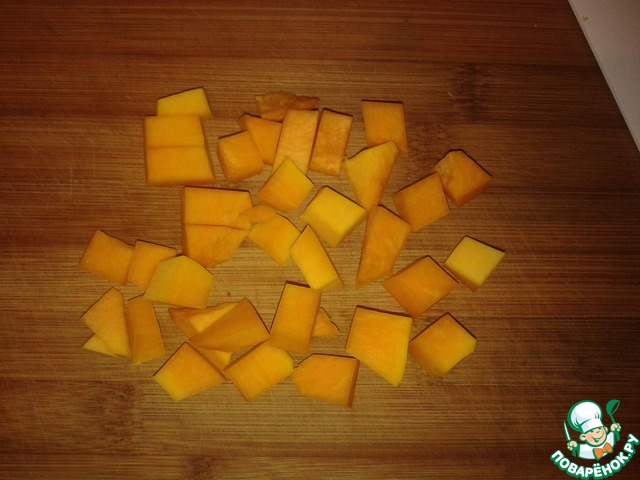 Тыкву нарезаем крупным кубиком;