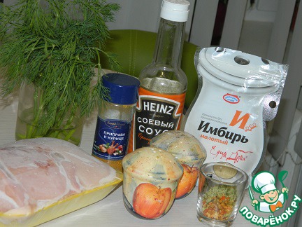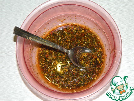Смешиваем в мисочке соевый соус, масло и смеси для мяса) у меня в составе приправ были лук, морковь, орегано, базилик, укроп, петрушка и др..