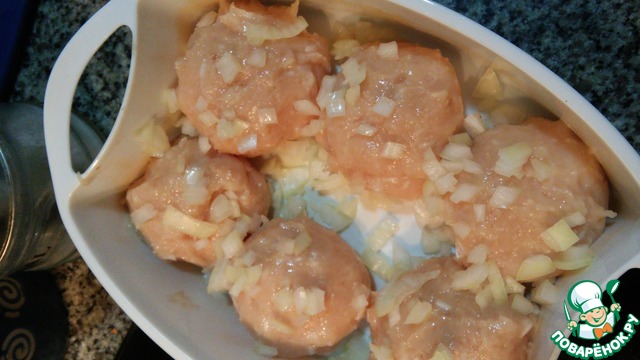 Смоченными в воде руками сформировать тефтели и выложить их в форму для варки круп.