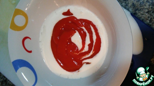 Томатную пасту и слвики смешиваем в пропорциях 1/1. Можно варьировать - добавить больше томатной пасты или наоборт, сливок - дело вкуса. Немного посолить и все тщательно размешать.