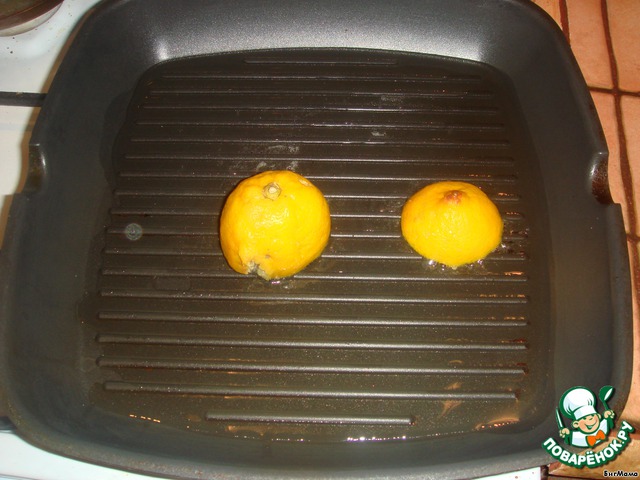 4. Обжарить на сковороде цедру лимона, срезом вниз до золотистой корочки. Лимон достать.