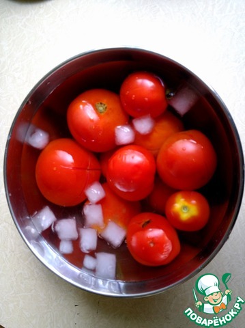 Кипяток слить, залить холодной водой, можно добавить лёд.