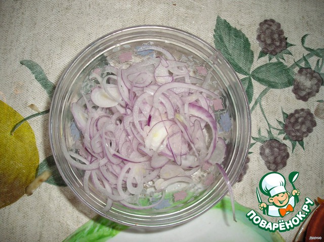 Очищенную луковицу шинкуем кольцами.