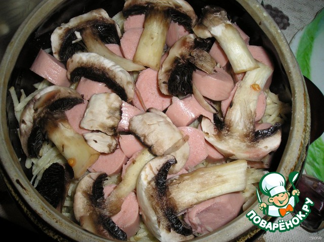 | Диетическая картошечка с сосисочками и грибами, по-быстрому. |